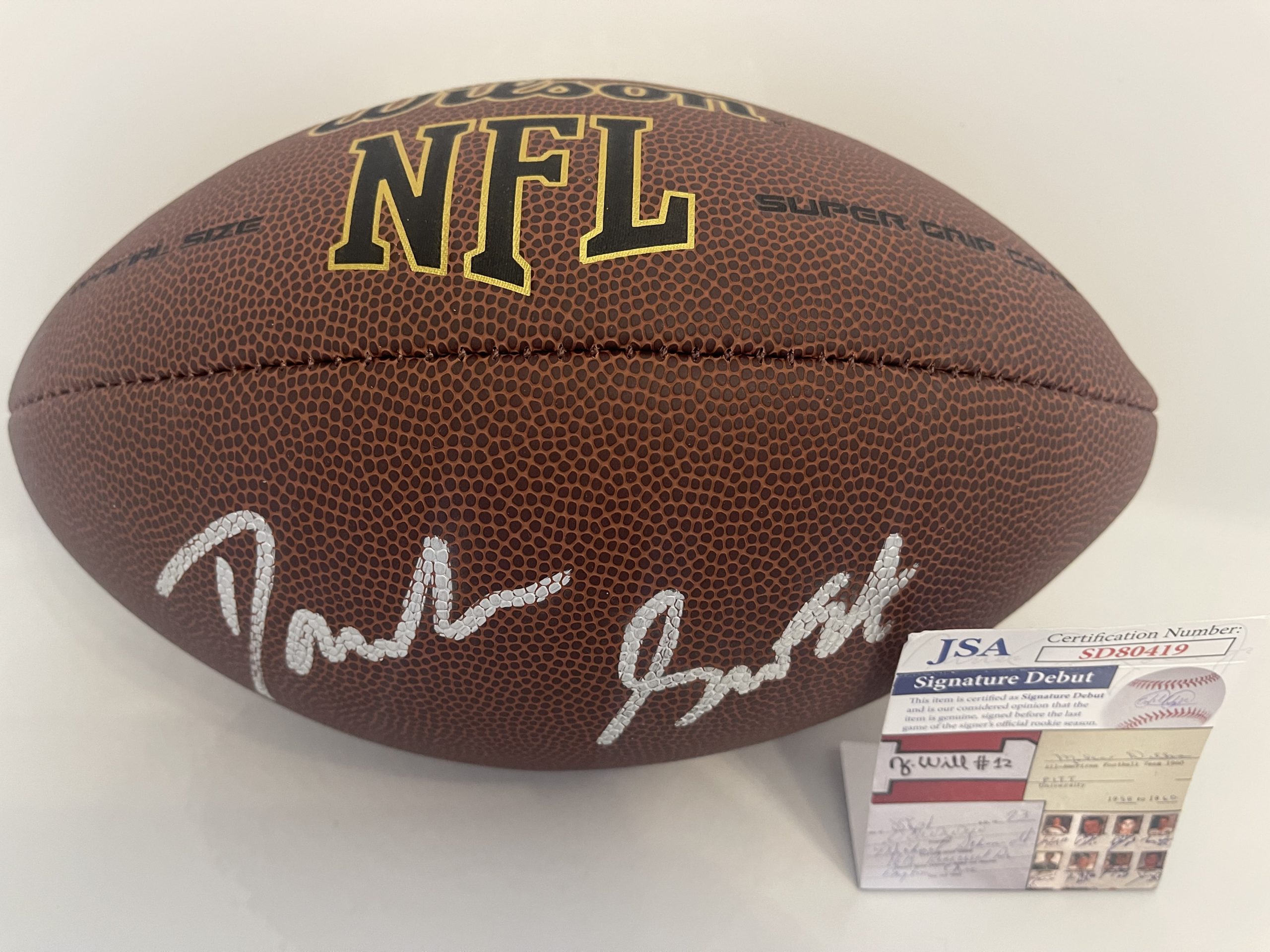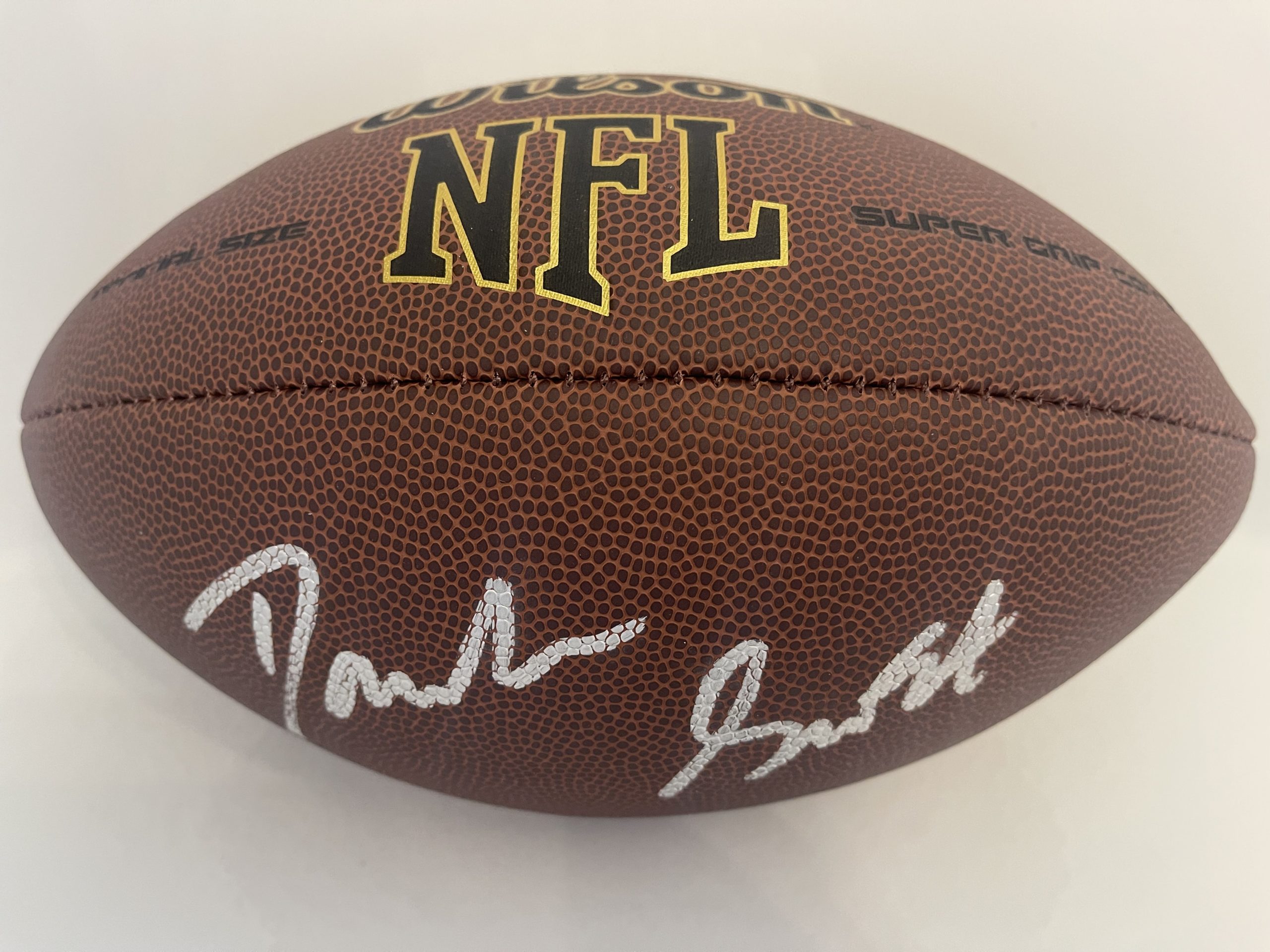 D’Andre Swift Autographed Football – donated by Greg Warren and Michael Hardenburgh. Amazing merchandise suitable for prominent display available at the Detroit Lions Podcast St. Jude Charity Auction!
